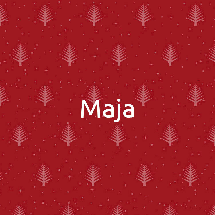 Videohilsen fra Julemanden. Julemanden sidder i sin store stol og sender en hilsen til Maja. Filmen tilsendes som link, så hilsnen kan hentes og ses flere gange. Videoen er i fuld HD og varer 5-6 minutter.